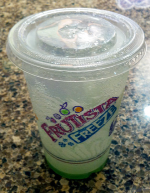 I eventually got up the guff – raised the cackles on the back of my neck – and got a Classic Limeade Sparkler. The entire time, I was looking at the poster of the Cherry. I was Mister Natty Nervous. The drink came out – with the proper lime wedge – and I took a sip. Bling-o, Blamm-o, Bloom-o – it was one of the sourest drinks that I’ve ever had. It has to be the drink that Sourpatch Kids drink in place of Gatorade . . . they probably even dump coolers of it on their Sourpatch coaches heads at the end of Sourpatch sporting events. My brain couldn’t figure out what in the world was going on – I tried to shake the cup to mix the sour green in with the Sierra Mist – but it was too full. I then got smart and moved my straw out of the danger zone and lowered the level of the beverage . . . it was not going to beat me . . . no way.