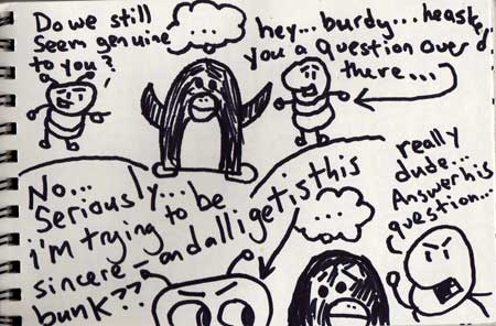 She murmured some sort of apology and then went to setting up the appointment . . . but never said how she was doing . . . how will I ever sleep through the night tonight with such an unanswered question floating around the ether?
