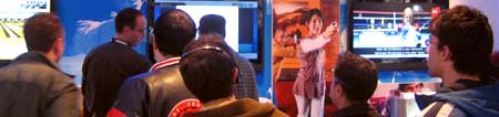 All of the games that I saw from “Wii Sports” were very simple (like mini-games) – but seemed to have good solid mechanics and also, they looked really fun to play. As the business guy cradled the “Wii-mote” like a ball and made a “throwing the ball” bowling motion, he really seemed thrilled whenever he picked up a spare or bowled a strike. The young tennis-pro got to serve the ball and then volley with forehand and backhand as his mother kept asking the Nintendo representative “When does this come out again? How much will all of this cost?” peppered in with her saying to her kid “Good hit! Next time move further to the side and hit it with your backhand . . .” and other helpful tips that only succeeded in making the boy cringe. Mister baseball got to “swing” the bat – hitting what I though were far too many “Home Runs” – but again these were simple and fun little games and then he move to the mound where he showed that he was a true double threat by throwing a no hitter.